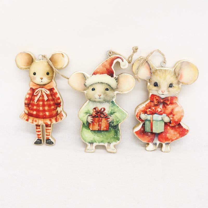 Vintage Wooden Mice Hangers 15cm 3 asstd - Multi