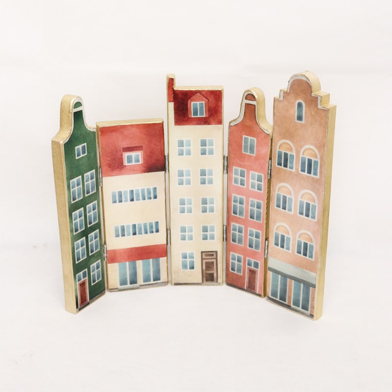 Vintage Wooden Folding Houses 31x20cm - Multi
