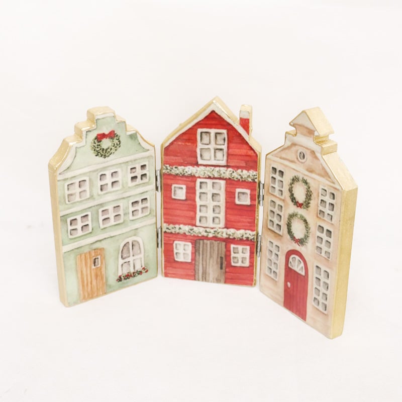 Vintage Wooden Folding Houses 35x30cm - Multi