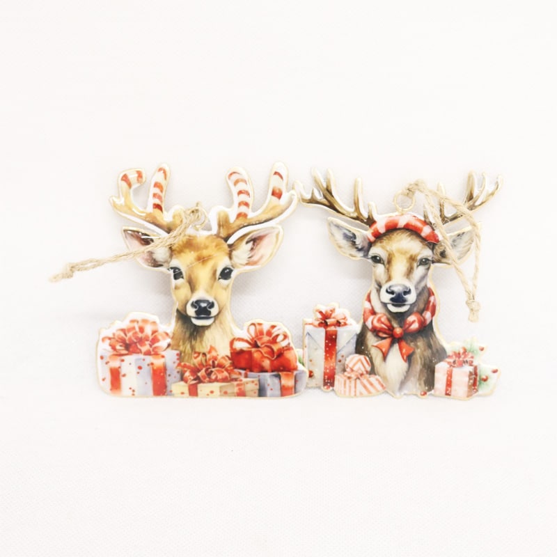 Vintage Reindeer Heads with Gifts Hangers 2 asstd - Multi